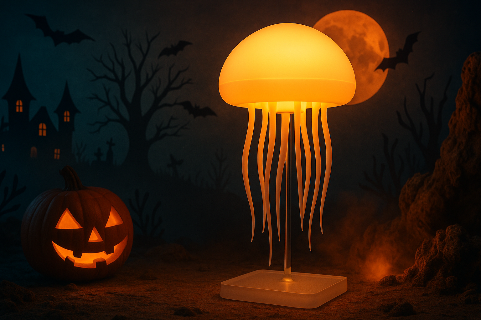 Each Jellyfish Lamp is handmade and features state of the art RGB gradient lighting that mimics the soothing effects found in the ocean. It is the perfect addition to your bedside table, nightstand, or on top of your dresser.